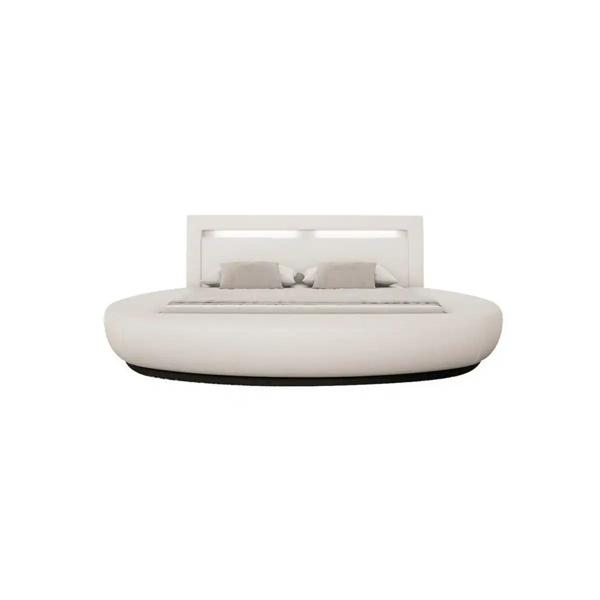 Rundbett 140x200 cm LED weiß Kunstleder-Optik