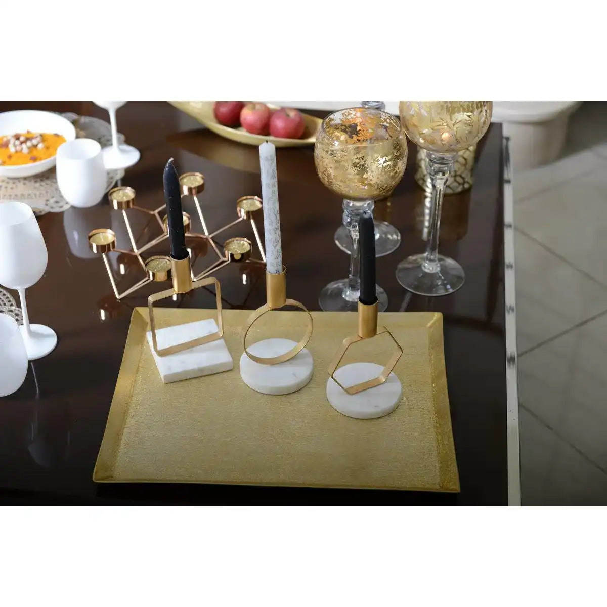 RUNDER MATT GOLDKERZENHALTER MIT MARMORHALTER H. 17 CM