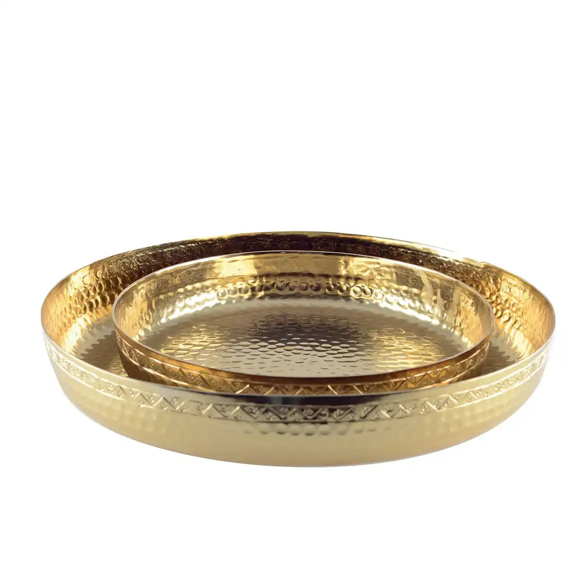 Lassen Sie sich durch den vielseitigen Nutzen unserer runden Plateaus verführen, wesentliche Teile, die Ästhetik und Praktikabilität verbinden. Unabhängig davon, ob Sie einen einladenden Tisch organisieren oder einen dekorativen Schwerpunkt erstellen, verleihen diese Rundschalen einen harmonischen Touch in jedem Raum. Ihr ordentliches Design passt an alle Anlässe und verwandelt jede Mahlzeit oder jede Ecke Ihres Innenraums in ein einzigartiges visuelles und funktionales Erlebnis.