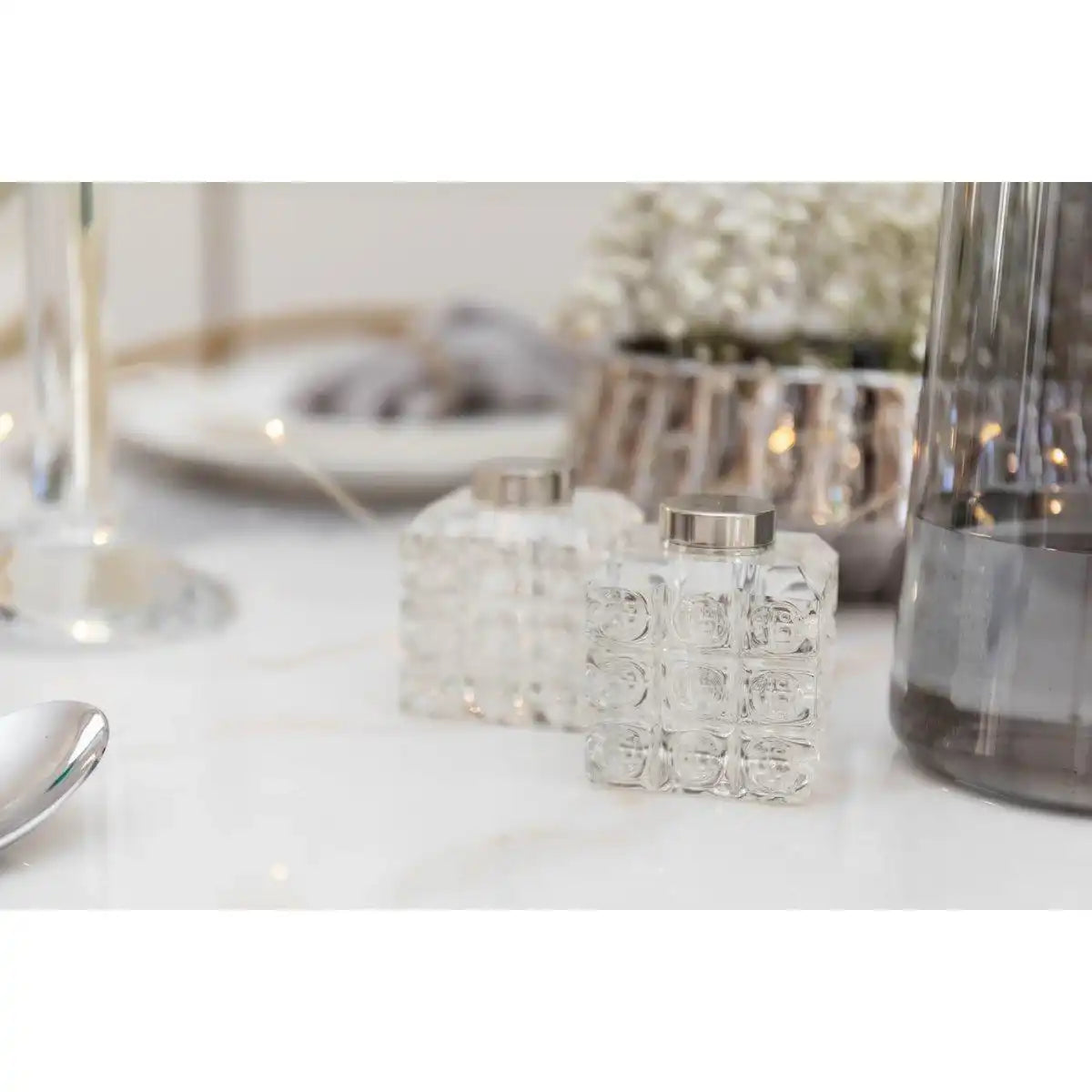 Entdecken Sie unser Salz und unseren Pfeffer, das so konzipiert ist, dass Sie einen Hauch von Charme an Ihren Tisch bringen und gleichzeitig den praktischen täglichen Gebrauch bieten. Jedes Duo mit seinem anspruchsvollen Design und seinen akribischen Oberflächen wird zu einem zentralen Element Ihrer Tabellenpräsentation und fügt Ihren Mahlzeiten eine Unterscheidung hinzu.