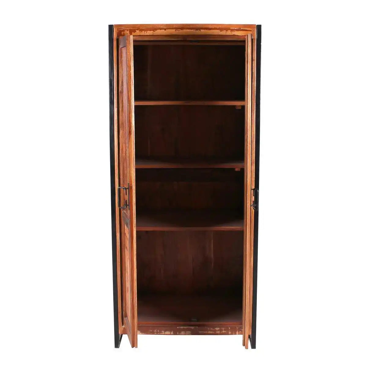 Holen Sie sich mit diesem Garderobenschrank einen Hauch Urlaub direkt in Ihr Zuhause. Der Schrank bietet genügend Stauraum hinter 2 blickdichten Drehtüren auf 3 Regalböden für vielerlei Dinge. Für lesefreudige Büchersammler eignet sich das Möbel ideal auch als Bücherschrank. Selbst Aktenordner würden hier einen Platz bekommen, täte dieses Möbelstück seinen Dienst als Büroschrank oder Aktenschrank. Die Einsatzmöglichkeiten dieses wunderschönen Möbels sind fast grenzenlos, ob privat, in Praxen, oder in Kanzleien. Angefertigt aus altem, massivem Holz von Fischerbooten geben ihm den beliebten Vintage-Look, umrahmt von einem schwarzen Gestell aus Metall, welches bewusst auf alt getrimmt ist, um auch hier das angesagte factory Design erzeugen zu können. Die Deckplatte eignet sich für diverse Dekorationsmöglichkeiten und lässt die Schönheit des Wandschranks erst zur Geltung kommen. Innen 3 Böden, 1 Kleiderstange Schrankinnenmaße: 155 x 68 cm.