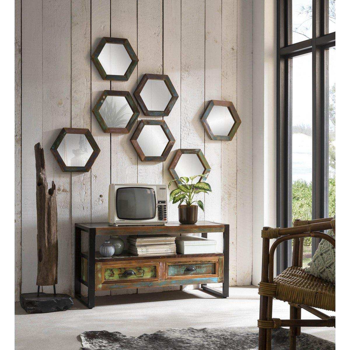 Der individuell designte Wandspiegel sorgt für signifikante Akzente in Ihrem Wohnraum. Dieses Unikat wurde aus Altholz gefertigt, welches ein optischer Knaller ist. So etwas hat nicht Jedermann Zuhause. Das traditionell bunte Flair lässt es zu, dass dieser Wandspiegel sich problemlos in modernes Mobiliar integrieren lässt. Hier ist jedes Teil ein Einzelstück von Wert. Trotz des stylischen Aussehen geht das wesentliche nicht verloren - die Spiegelfläche bietet Ihnen genügend Platz, um sich darin zurecht zu machen, bevor Sie das Haus verlassen. Rahmen aus bunt lackiertem Altholz.