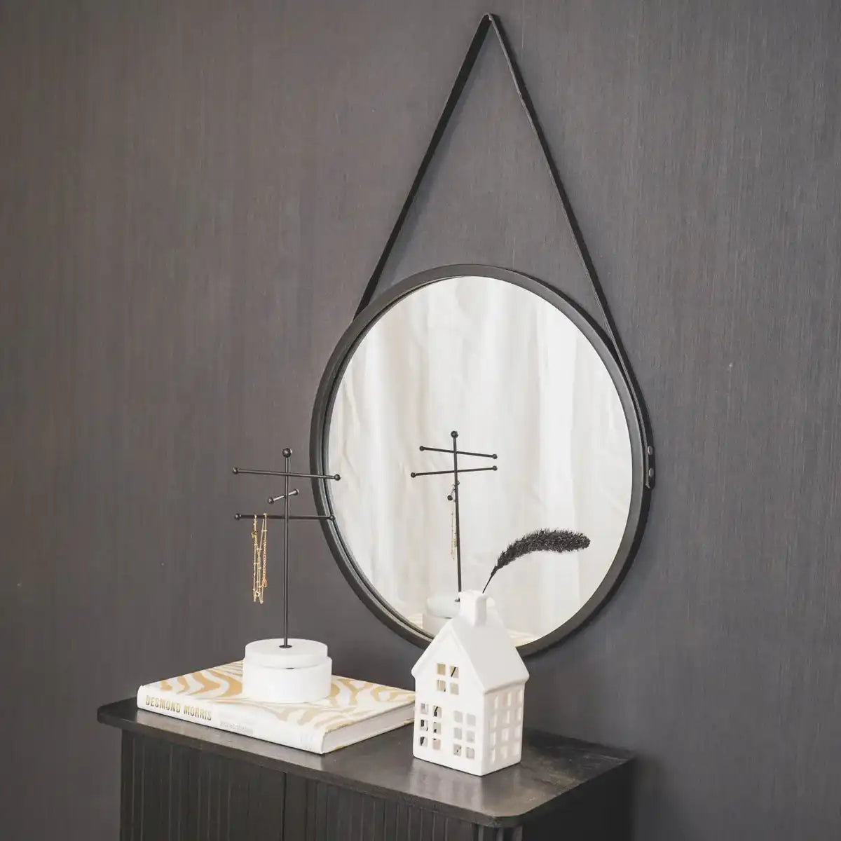 Housevitamin Runder Spiegel – Metall – Schwarz – 50 x 2,5 x 50 cm