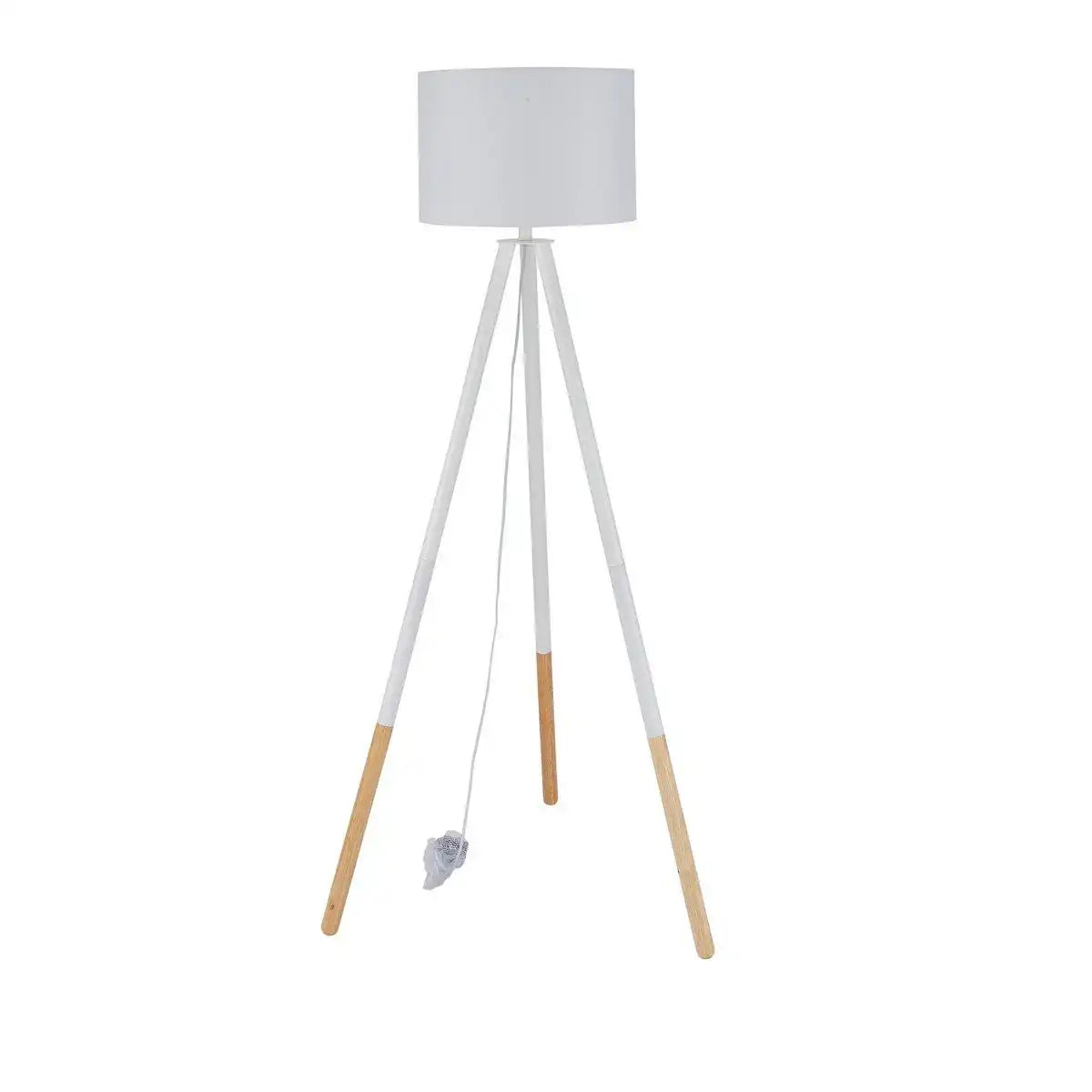 Stehleuchte mit Holzgestell und Stoffschirm Weiß/Natur