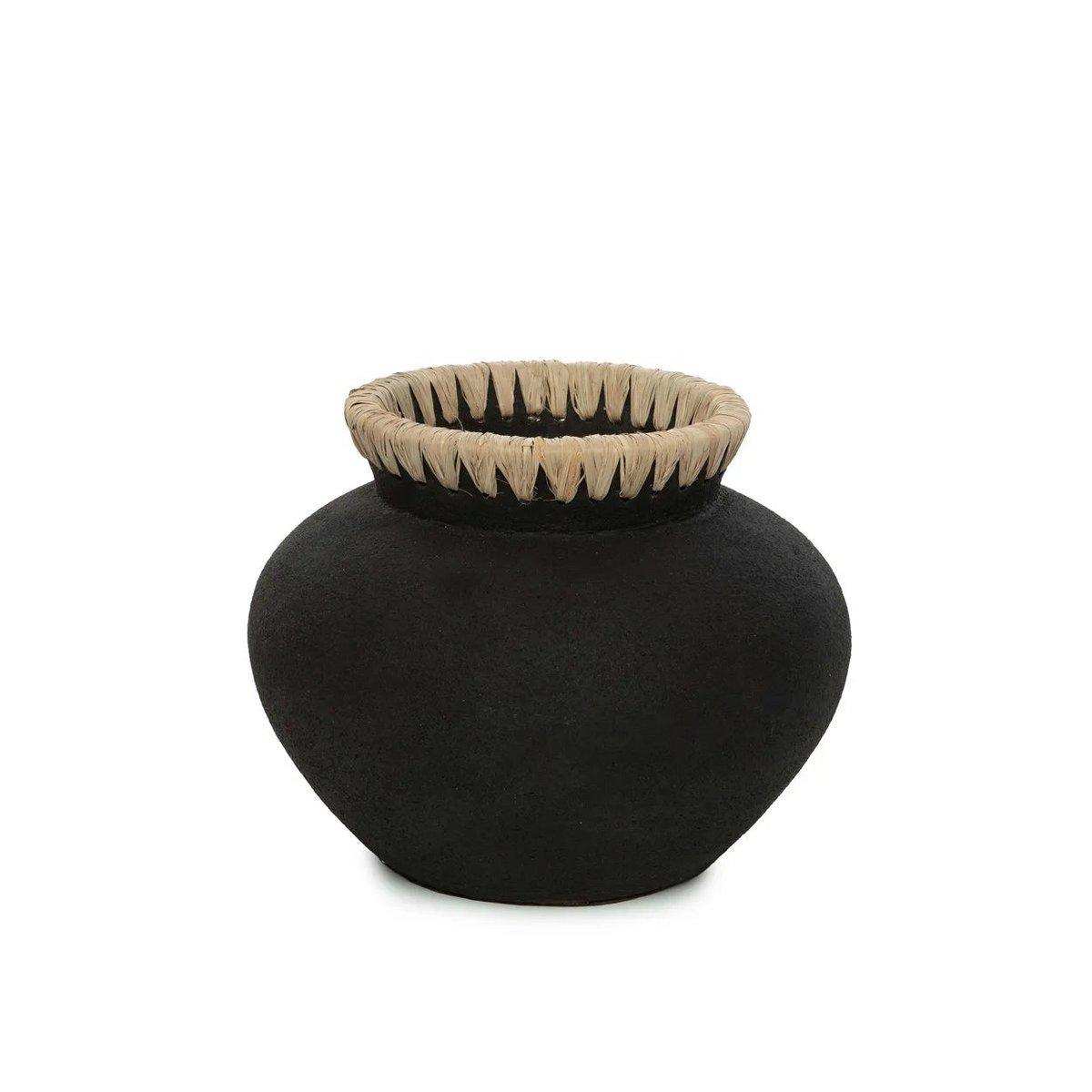 Geben Sie Ihren Pflanzen oder Blumen (getrocknet) die Vase, die sie verdienen, mit diesem Terrakotta-Meisterwerk, das in drei Größen erhältlich ist. Das Bastdetail am Rand verleiht Ihrem Wohnzimmer, Badezimmer oder überdachten Außenbereich sofort Küstenatmosphäre. Erhältlich in drei Größen und zwei Farben. Bitte beachten Sie, dass es sich hierbei nicht um eine wasserdichte Vase handelt und nur mit Trockenblumen verwendet werden darf.