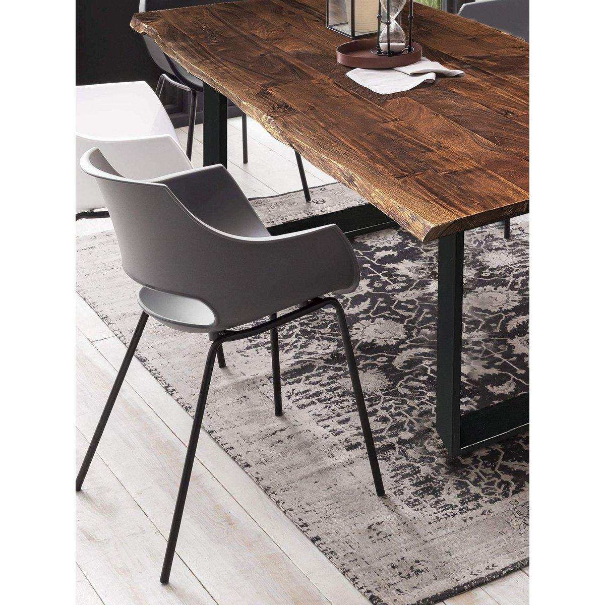 Esstische mit echter Baumkante sind die passende Wahl für ein Esszimmer mit Charakter. Die ausdrucksstarke Tischplatte aus nussbaumfarbiger Akazie ist dabei so individuell wie Ihr Wohnstil. Die deutlich sichtbare Holzmaserung und die naturgewachsene Form der beiden langen Tischkanten sind Merkmale, die Ihren Raum nicht nur wohnlicher machen, denn in Verbindung mit dem schwarz lackiertem Stahlgestell kommt auch ein zeitlos moderner Look einher. Hinweis: Die Tischplatte ist ein Naturprodukt. Es kann zu Astlöchern, Wuchsrissen und unterschiedlichen Farbschmückungen kommen, welche jedoch kein Reklamationsgrund sind, sondern die Echtheit des Holzes unterstreichen. Plattenstärke 26 mm, bestehend aus ca. 5-8 Planken (i.d.R. 7 Stück), Breite Gestell 74 cm, Maß des 4-kt-Rohrs 8x4 cm, mit 2 Stellschrauben zum Höhenausgleich, unter der Platte sind 3 Gratleisten, Abstand zwischen den Beinen 83 cm, Holzoberfläche 2 x lackiert und gewachst.