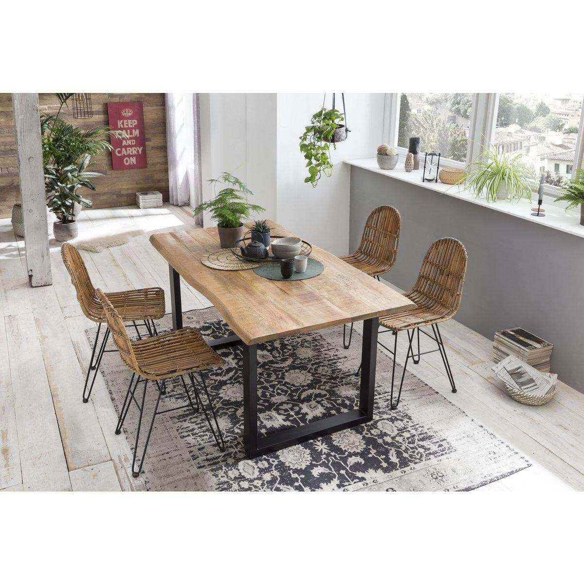 Tisch 160x85 cm, Mango natur sägerau, Gestell schwarz