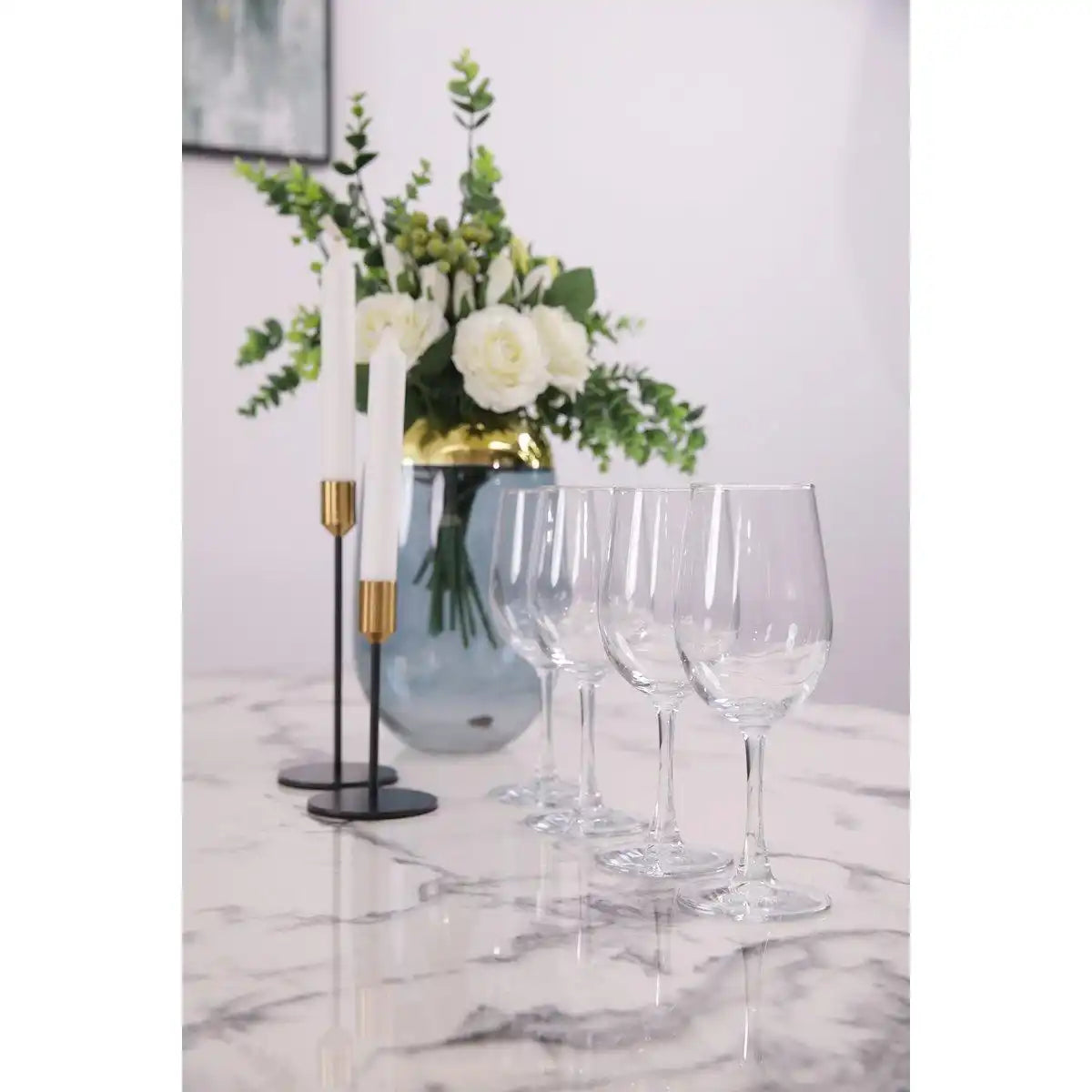 Dieser elegante Esstisch mit filigranem Metallgestell und einer abgerundeten Glasplatte in Marmoroptik lässt Ihren Essbereich gleich viel edler wirken. Plattenstärke 10 mm, Tischplatte mit bedrucktem Papier in Marmoroptik und mehrschichtigem Harzüberzug, Abstand zwischen den Tischbeinen: Kurze Seite ca. 79 cm, lange Seite ca. 121,5 cm.