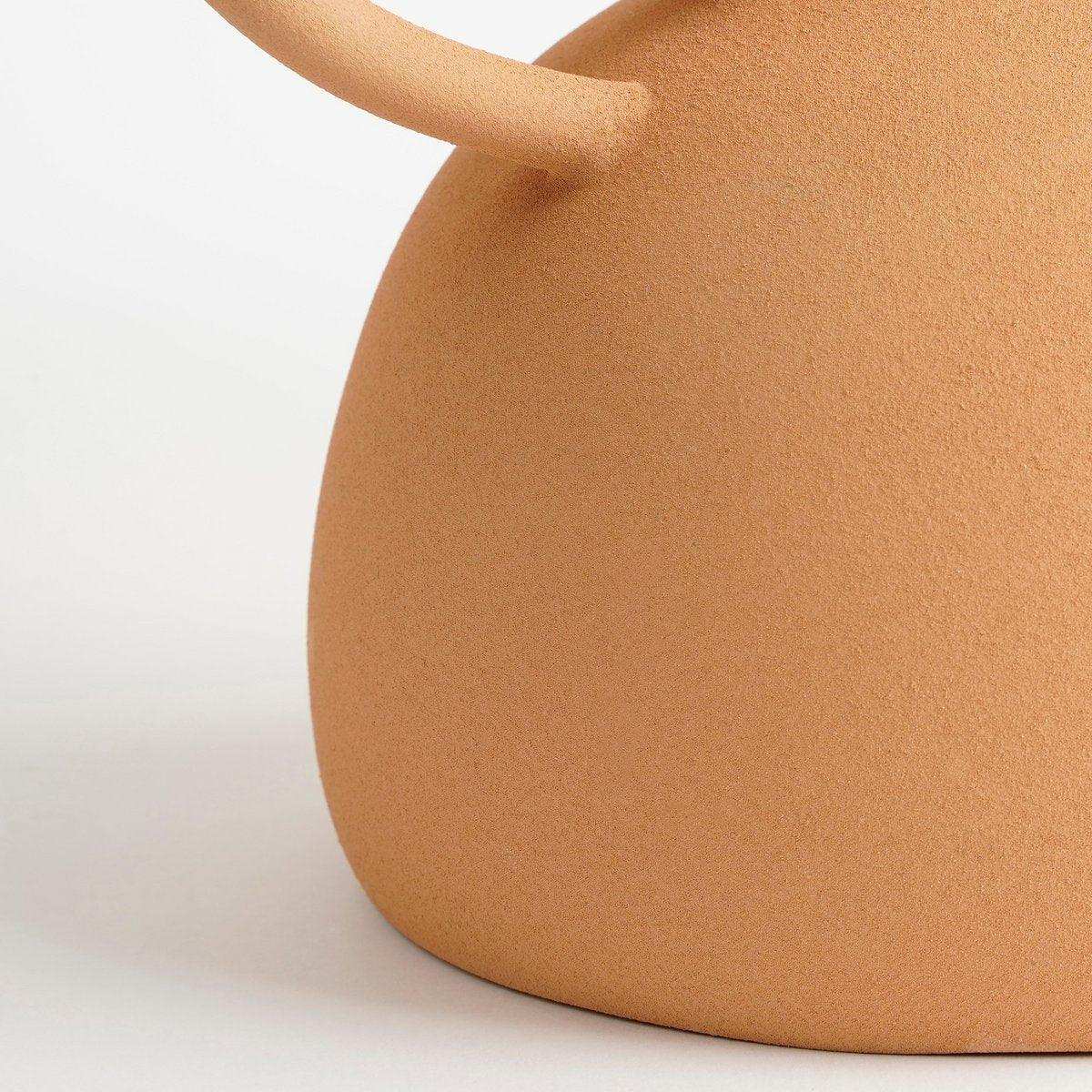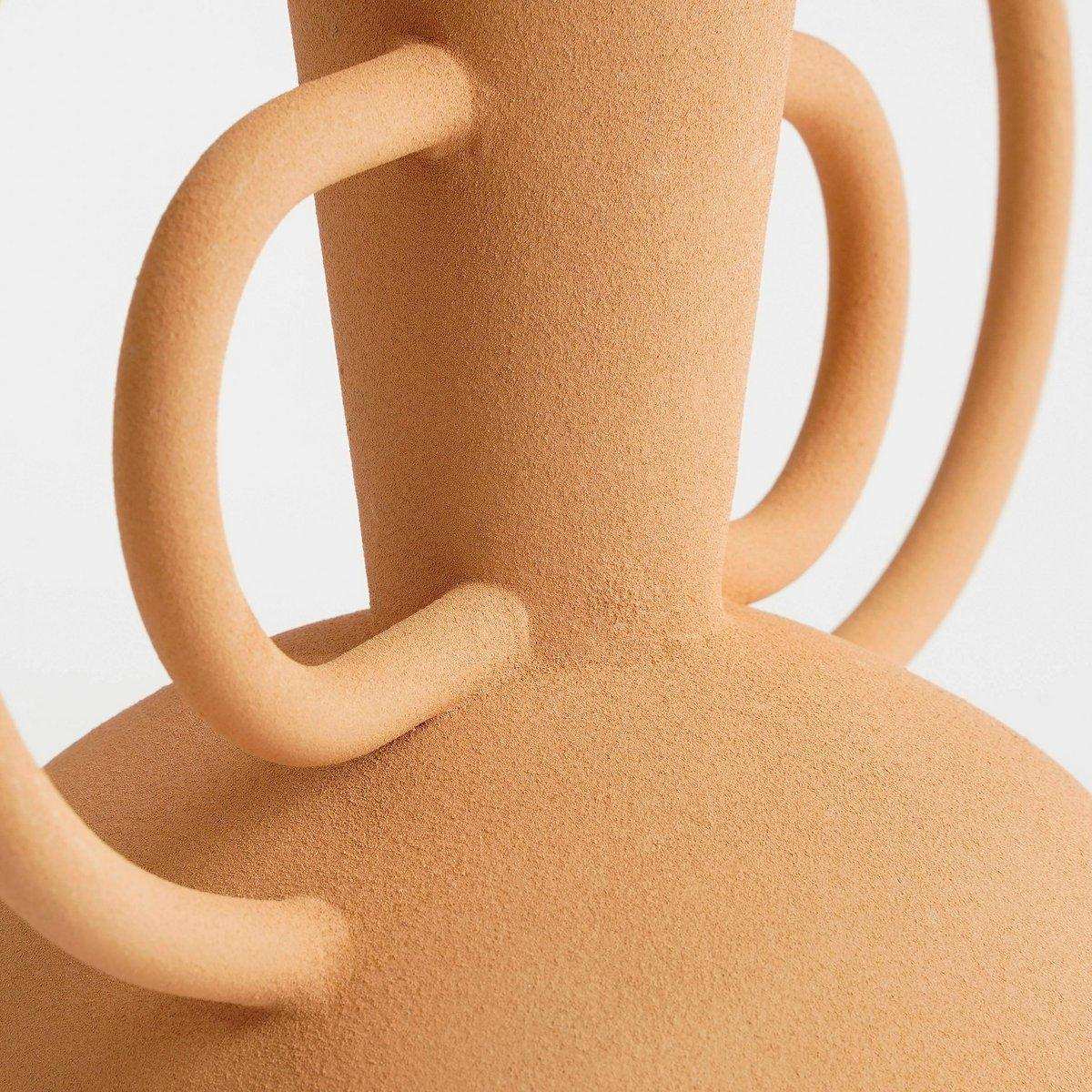 Mit dieser Vario-Vase von Mica Decorations holen Sie sich einen Hingucker in Ihr Zuhause. Die Metallvase ist pfirsichfarben gehalten und hat eine matte, raue Oberfläche. Die Vase zeichnet sich durch die stilvollen runden Griffe aus. Passt perfekt in ein modernes Interieur! Die Vase hat oben eine schmale Öffnung und ist 22 cm lang, 15 cm breit und 26 cm hoch. Ideal für ein paar frische Blumen, dekorative Zweige oder Federn. Auch stilvoll zu kombinieren mit mehreren Metallvasen aus der Vario-Kollektion von Mica Decorations.