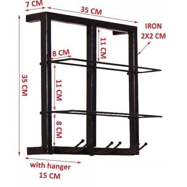 Eine attraktive Lösung zur Flaschenlagerung stellt das dekorative Weinregal-Set für die Wand im rustikalen Factory Design dar. Optisch überzeugt das Flaschenregal-Set im Industrial Style durch klare Linien und den robusten Metallrahmen in antikschwarzem Metall. Zusätzlich punktet das Set mit hoher Funktionalität, da es Stauraum auf kleinstem Platz bietet. Zwei Flaschen und drei Gläser lassen sich in der Weinaufbewahrung lagern. Das Regal mit Aufbewahrungskorb ist ideal als dekorativer Korkenfang. Das Wandregal-Set bietet ein individuelles Gesamtbild und die Möglichkeit zur Präsentation von edlen Weinflaschen auf die etwas andere Art. Ob in Küche, Ess- oder im Wohnzimmer – dieses Regal-Set wird sicherlich zum Blickfang. 1x horizontales Weinregal für 2 Flaschen 35x15x35 cm, 1x Wandregal mit Korkenfang 35x15x35 cm, Metallstärke 2x2 cm.