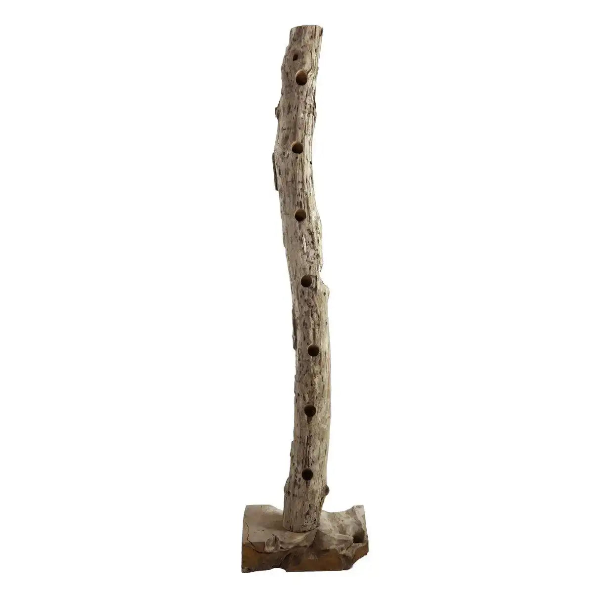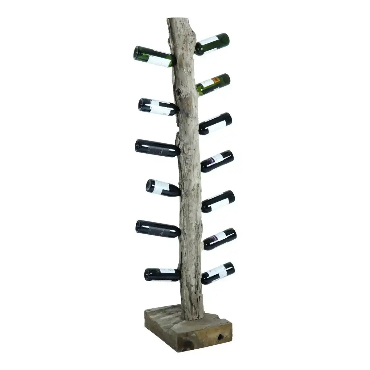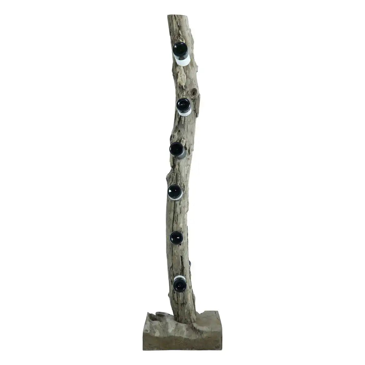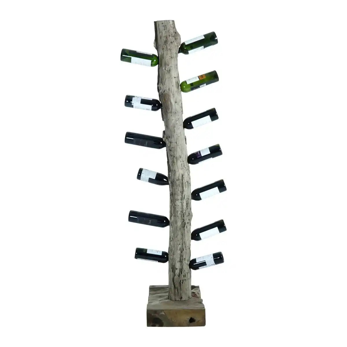 Ein Weinregal der besonderen Art, das durch seine Natürlichkeit besticht. Das recycelte Teakholz kann hier das Thema Nachhaltigkeit optisch sehr gut zur Sprache bringen. Weder Weinschrank noch Weinkommode, eher einem Rebstock nach empfunden. Platz bietet das Weinlager für insgesamt 13 Flaschen. Der „Weinstock“ ist ein Hingucker in der Gastronomie auf eine natürlich dekorative Art. Dieser Flaschenhalter gewährt einen völlig freien Blick auf die Weinsammlung. Das Regal harmoniert in Wohnbereichen, Esszimmern oder Lofts mit vorhandenem Mobiliar. Ob zu modern, factory oder shabby eignet sich das Flaschenregal hervorragend, da es völlig zeitlos harmoniert. Aus recyceltem Teak.